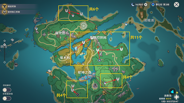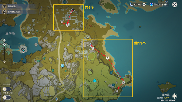 12、平海砦有三条路线共可以收集14个。