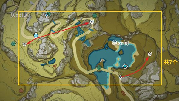 4、接着是庆云顶右下侧的位置和绝云间右下侧的位置共收集7个。